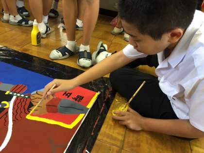 一人の生徒の絵だけでなく、何人かの絵を組み合わせクラス旗を作っているクラスもあります。