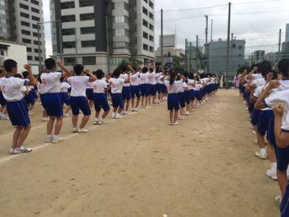 朝一にも関わらず、行進練習やラジオ体操はしっかりと決めてくれました。