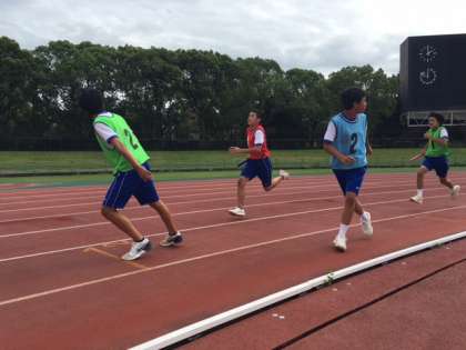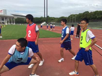 準備運動も入念に行い、バトンを繋いでゴールを目ざします。