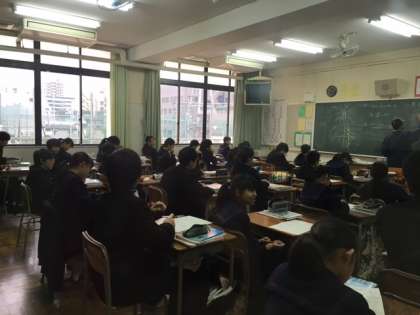1年生の数学の様子です。 テストを明日に控え、皆集中して取り組みます。