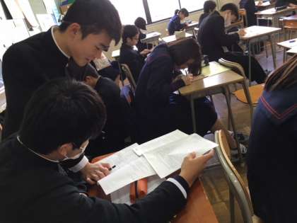 わからない問題は友達に聞くなど、クラスで支えあえながら受験に挑みます。