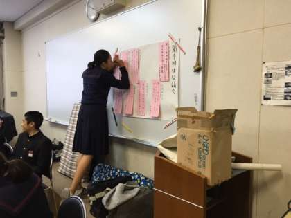 昨日の常任委員会で決まった目標を生徒議会で話し合いました。