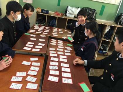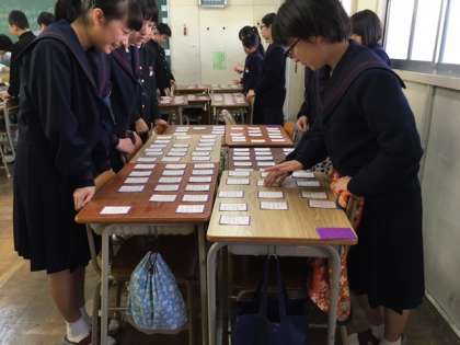2年生は総合の時間に百人一首大会に向けての練習をしました。