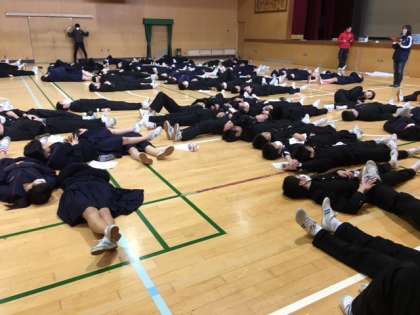そして最後にはみんなで体育館に横になって癒しの音楽を聴きながら、深呼吸をしてリラクゼーションタイムとなりました。