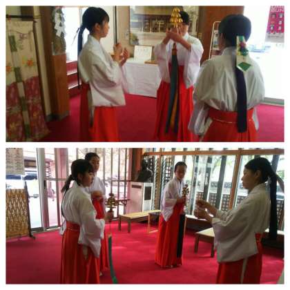 神社では神楽舞の練習中