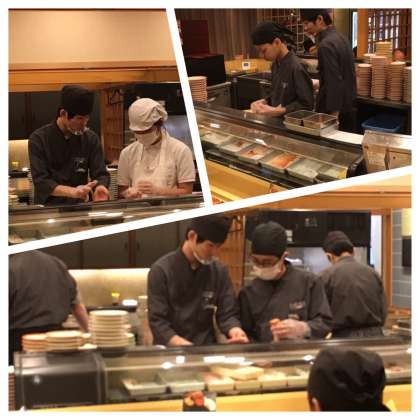 > 寿司の握り方を習います。