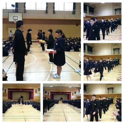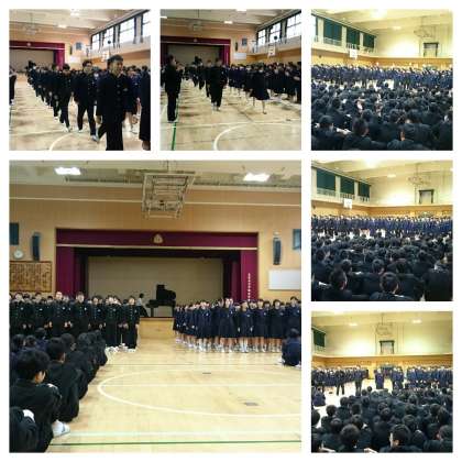 暖かい拍手の中、入場してくる3年生達。3学年揃っての素敵な時間となりました。