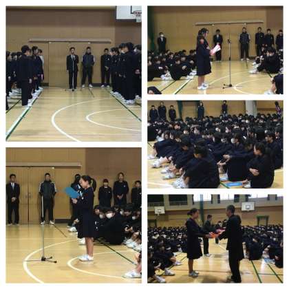 2年生の有志を中心に準備した「ハピネス」という歌のプレゼントです。