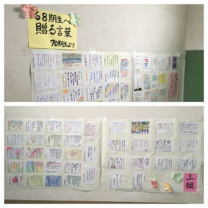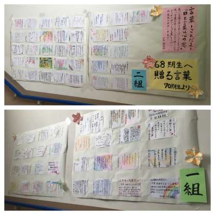国語の授業で作成した心温まる贈る言葉たちがずらりと並んでいます。
