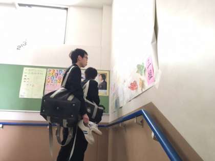 階段には1年生から3年生へ向けて書かれた贈る言葉が飾られています。