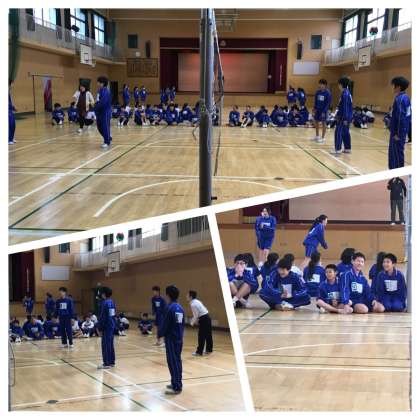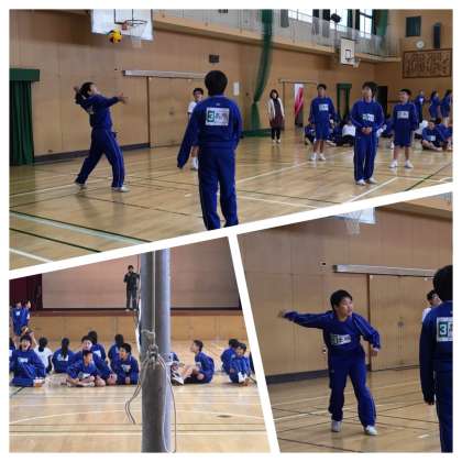 1年生は体育館と運動場に分かれて球技大会の練習をしました。