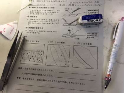 細胞が分裂するときの変化の様子を観察しスケッチ、考察しました。