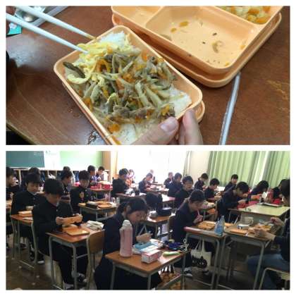 牛肉やごぼうなどを甘辛く炒めて甘酢で和えた具を載せて最後に錦糸卵を上に散らせていただきます。