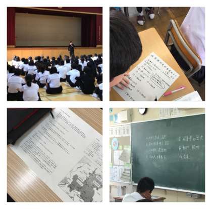 朝の学年集会で修学旅行実行委員長からアンケートのお知らせがありました。