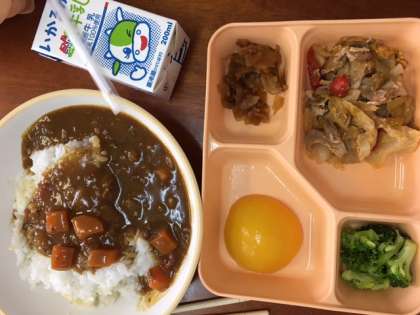 カレールウご飯にかけ、副食器に入ったブロッコリーを加えて頂きました。