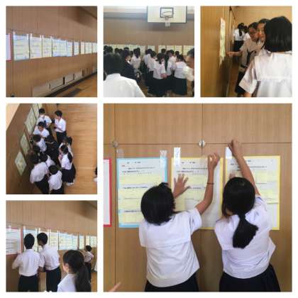そしてそれぞれの班が考えた内容を張り出し、みんなで見て回りました。