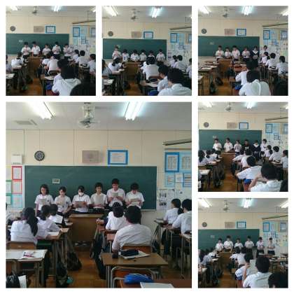 次の時間に、すぐに班で発表。3分間の発表時間が長く感じられましたが、どの班も上手に発表することができました。