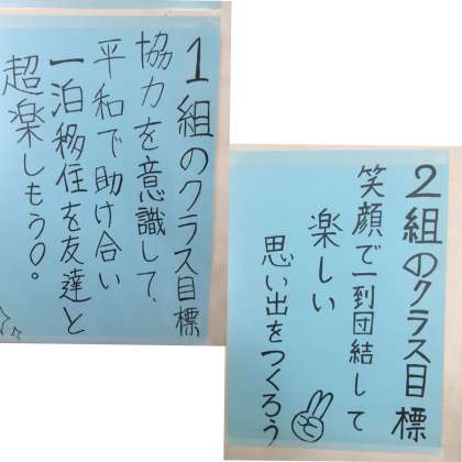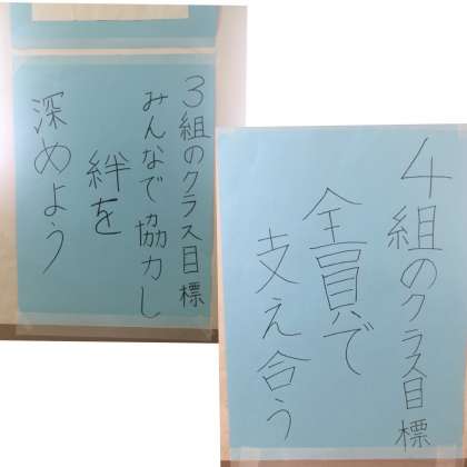 廊下には先日学年集会で発表したクラス目標が掲示されています。
