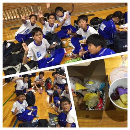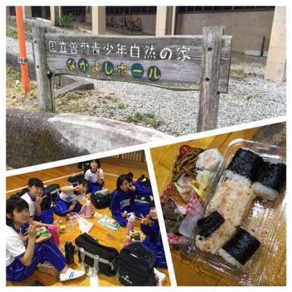 外は雨のため、なかよしホール(体育館)でお昼を食べました。
