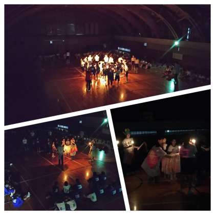キャンドルに火を灯し、みんなで『燃えろよ燃えろ』を歌い、とても幻想的でした。