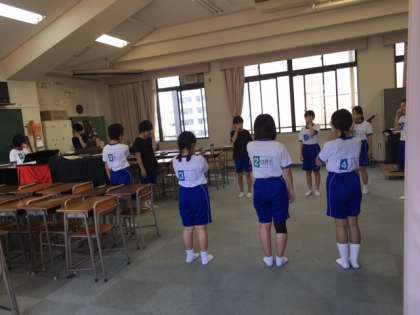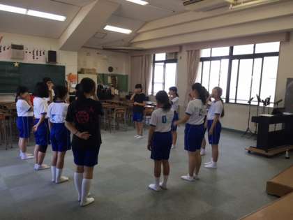 みんなで円になり発声練習をしています。