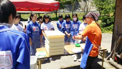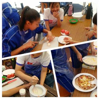 材料を切って生地にトッピング、石窯で焼いたピザは最高です!アイスクリームも手作りしました。
