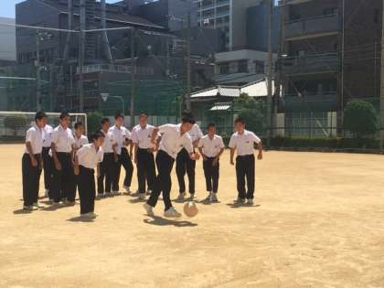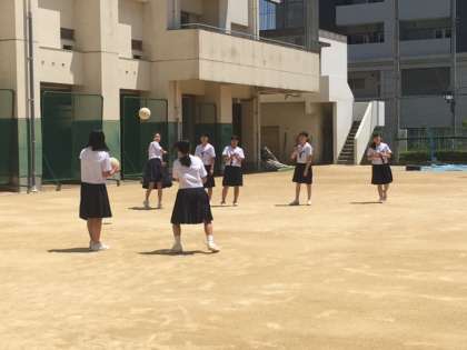 男子はサッカー?PK?、女子はドッチボールをしていました。