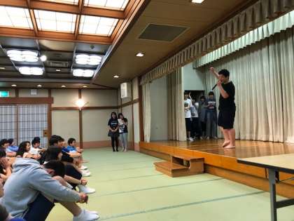 はじめは、実行委員によるジェスチャー伝言ゲームとイントロクイズです。