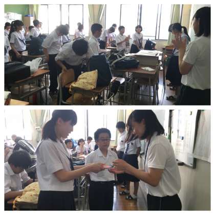 1年生のクラスでは終礼の時間にサプライズで先生に歌とメッセージカードのプレゼントをしました。