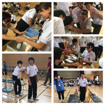 車椅子やアイマスク体験を通して、体の不自由な人たちがどんな思いで日々生活しているのかを身を持って感じたようです。