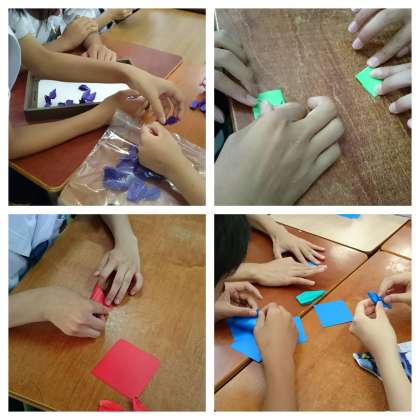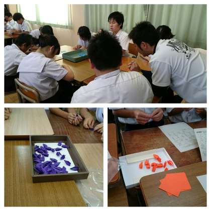 平和に関するDVDを水曜日に見た後、本日は班で鶴を折りました