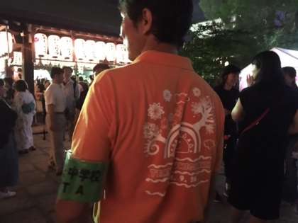昨日、今日と生國魂祭があり、PTAの方々と一緒に巡視しました。