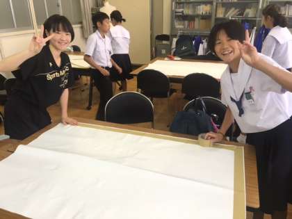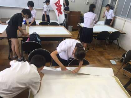 夏休みに分担して作ったスローガンの仕上げ作業に取り掛かります。