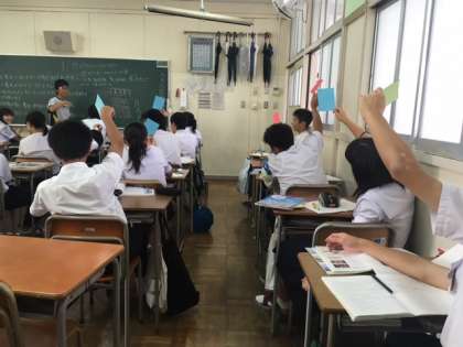 カードを使って自分の意見を示し、いろんな意見があることに気づきました。