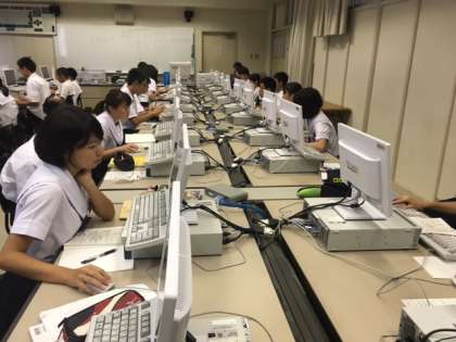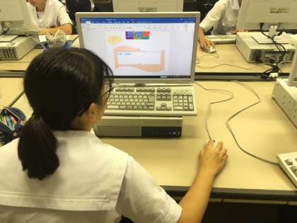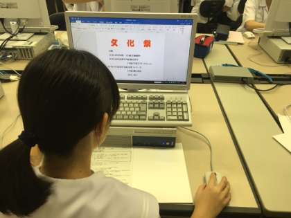 パソコンのワードソフトを使って、文化祭のチラシを作っています。