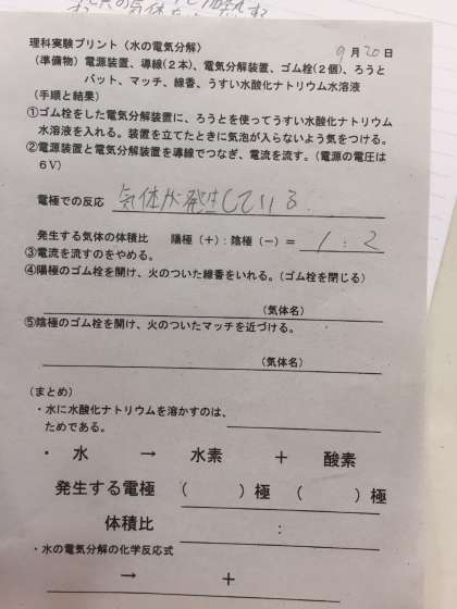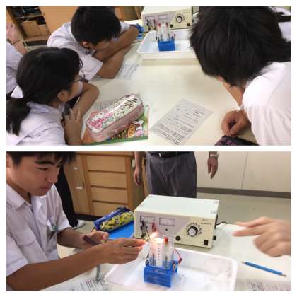 水の電気分解の実験をしました。