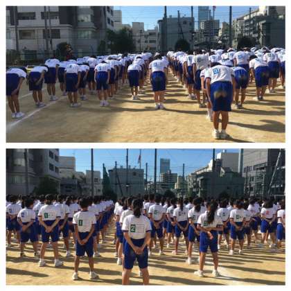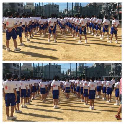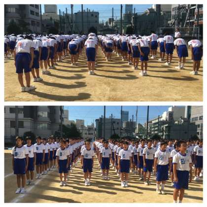 行進、ラジオ体操から整列や気をつけ、礼の練習まで細かく確認しました。
