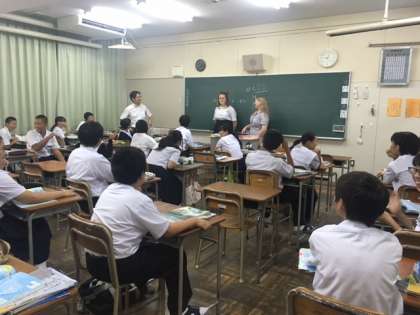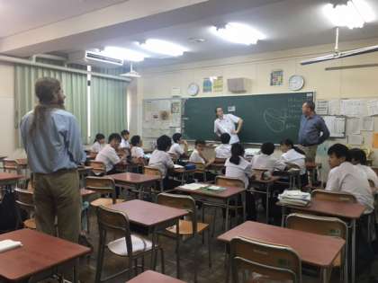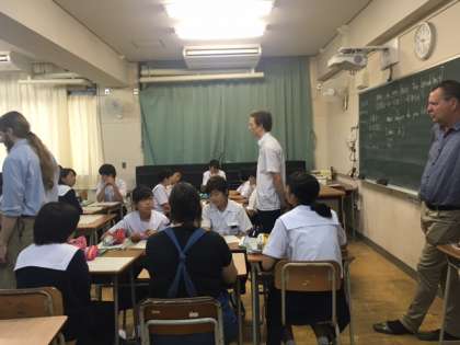 現在、OBF高校の学生の家にホームステイしているオーストラリアの学生たちが、日本の中学校の様子を見にきました。