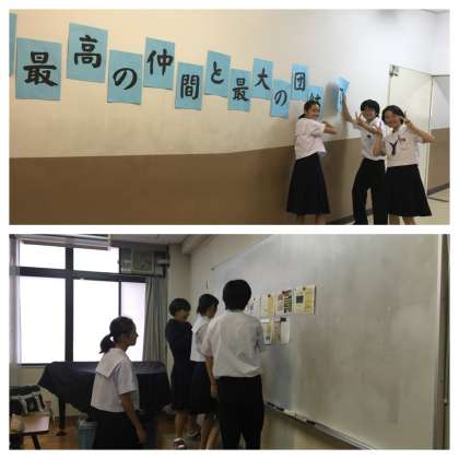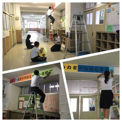 以前作成したスローガンを各学年のフロアと格技室前に貼りました。