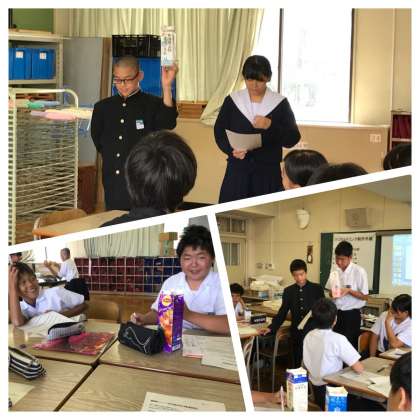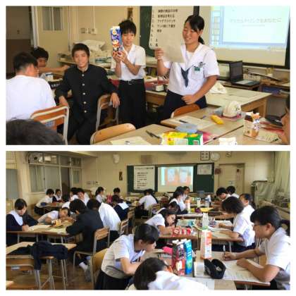 1時間目は実際に店頭に並んでいる商品のパッケージのデザインを分析しました。