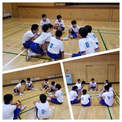 本時は円陣パスを繋ぐにはどのようにすればいいのかについて話し合いをしてから、実践に臨みました。