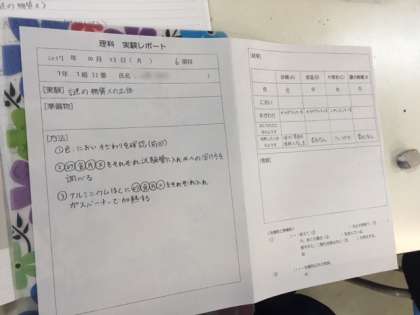 物質を熱することで起こる状態の変化からどんな物質であるかを確認し、レポートにまとめました。