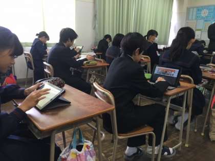 1人一台のタブレットを使って、次回の調べ学習に向けてタブレットに慣れる練習です。