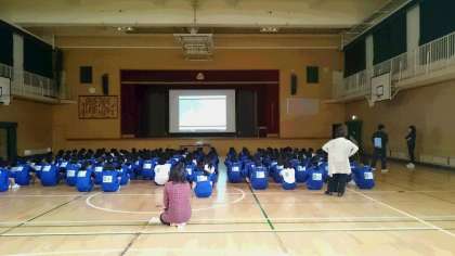 2年生は本日午後、天王寺区役所・天王寺消防署の方にお越しいただき、防災学習を行いました。