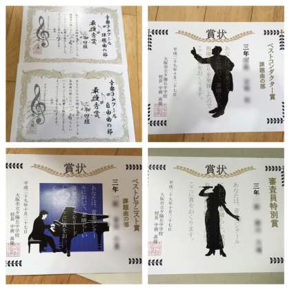 音楽コンクールの表彰が最優秀クラス、優秀クラスそして個人賞が表彰されました。