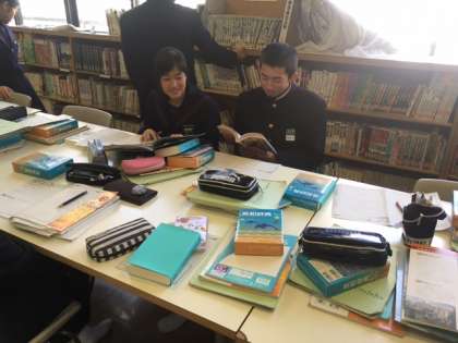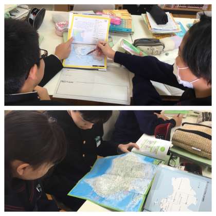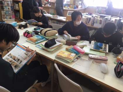 班ごとに1つの国を担当して、その国について本を使って調べていきます。