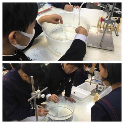 マッチの火を近づけて水素が燃えるというのを確認しました。