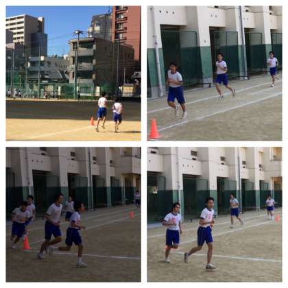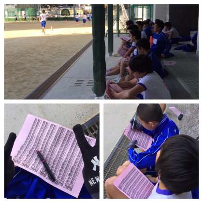 記録者は1周ごとのタイムを計り、声援を送ります。