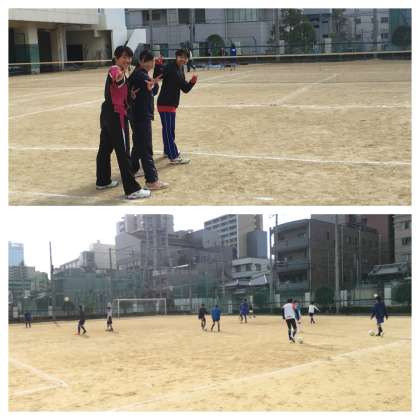 午後の部前半、運動場ではテニス部とサッカー部がアップをしています。