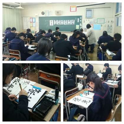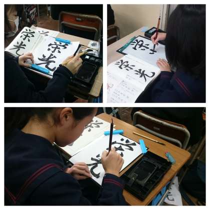 墨の香りが教室を満たし、静かな集中した時間が流れています。